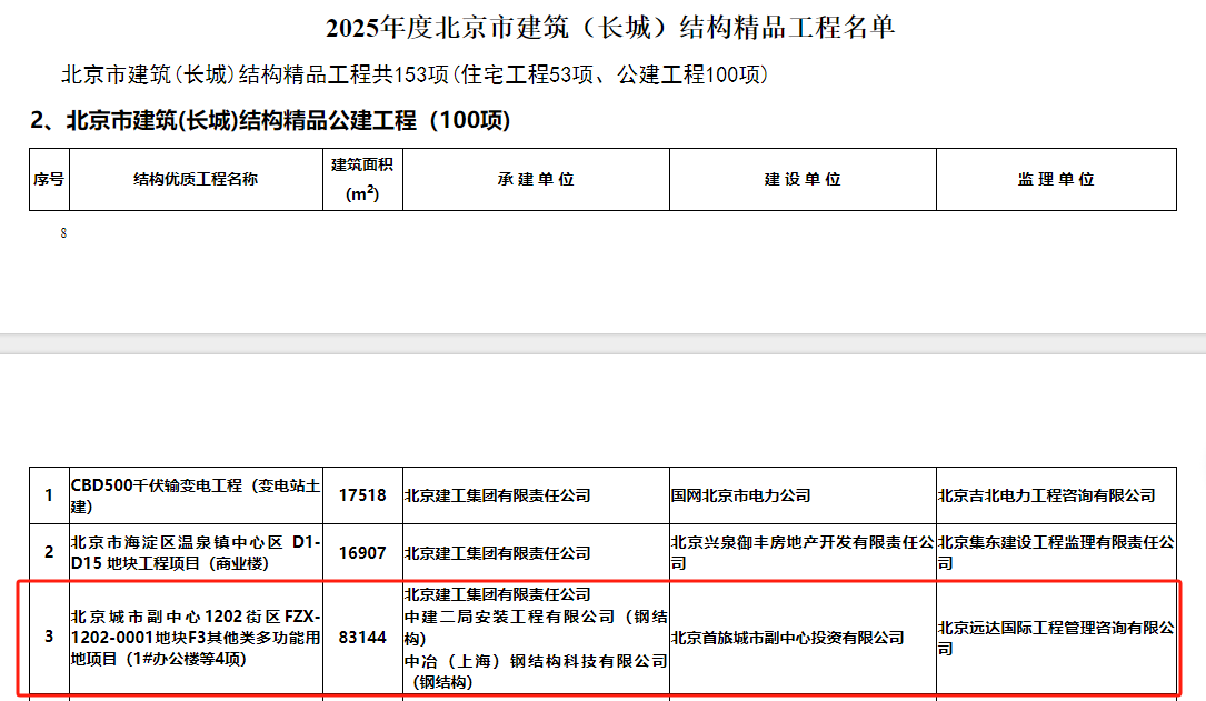 遠達國際承接的首旅總部大樓項目榮膺2025年度北京市建筑(長城)結構精品公建工程